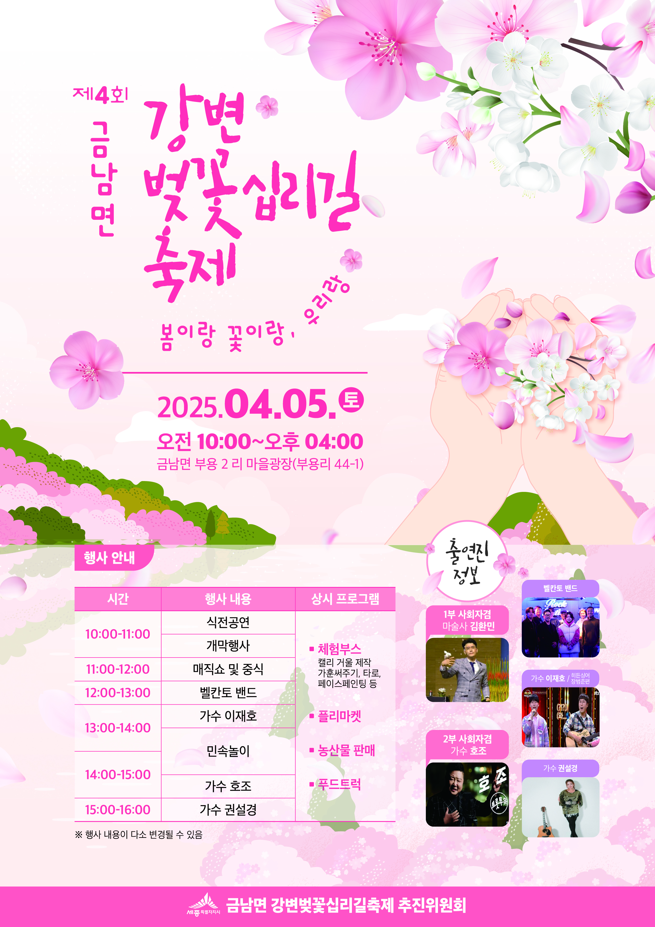 | 금남면 강변벚꽃십리길축제 개최 | 2025-04-01 | ||